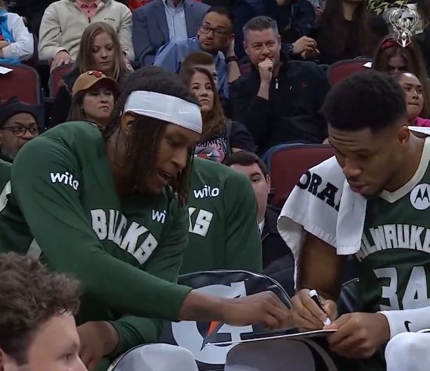 抢老李活儿?字母哥在替补席认真画战术,特纳也参与其中